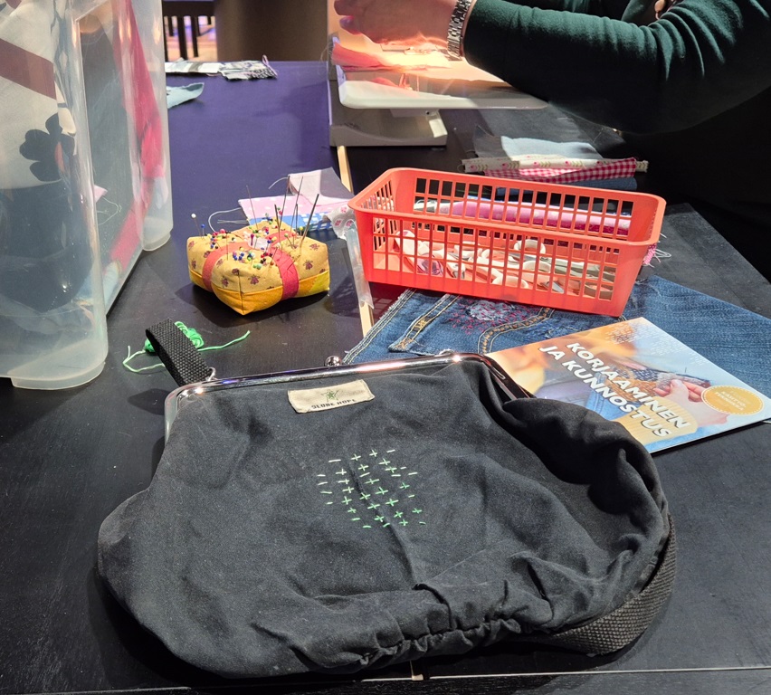 1. Oli kyllä todella mukava tapahtuma! Itselläni tuo tavaroiden korjaus on kyllä iso asia, koska se auttaa sitoutumaan tavaroihin, kun niihin on laittanut omaa vaivaa ja näkee kädenjälkensä. Yleensä olen tehnyt korjauksia, jotka eivät näy, mutta tätä tekniikkaa tulen varmasti käyttämään jatkossakin.